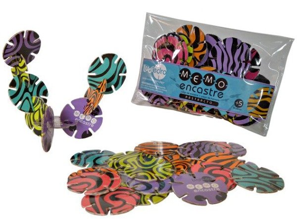 2 en 1!!! Un juego clásico de memoria de 30 piezas ilustradas y juego de encastre para armar esculturas divertidas.